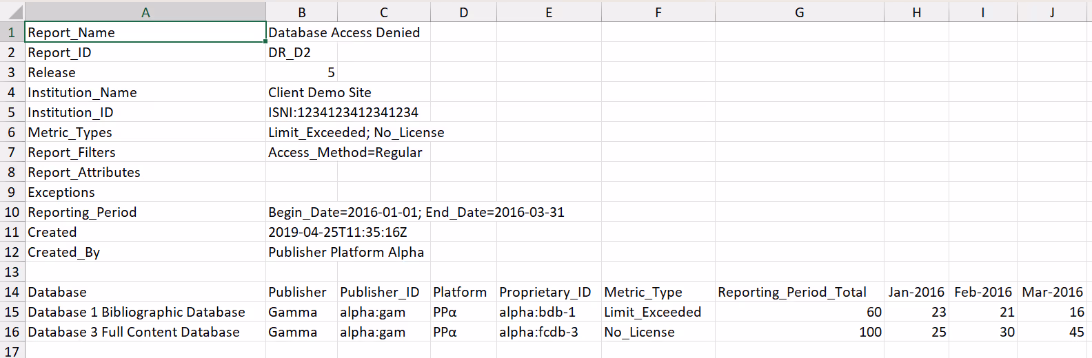 Reports on Access Denied activity for databases where users were denied access because simultaneous-use licenses were exceeded or their institution did not have a license for the database.