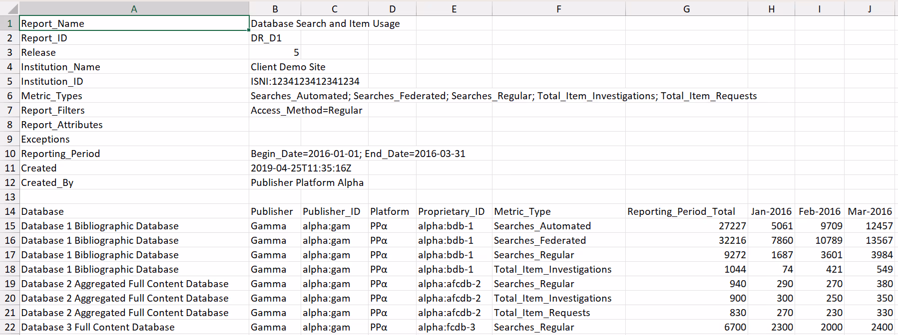 Reports on key Searches, Investigations and Requests metrics needed to evaluate a database.