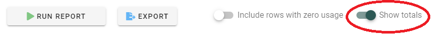 In our report overview, we can see a column called "Row total". This value does not make any sense in our example, because it combines all our metrics. We can get rid of it by disabling the "Show totals" toggle next to the famous "RUN REPORT" button:
