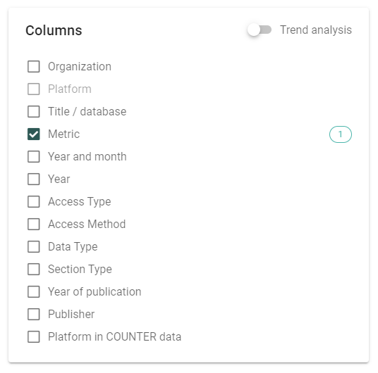 You can select any number of values from the list to display in columns according to your preference. Another possibility is to create a trend analysis report, that works slightly differently. For more information about trend analysis reports, please read this article.