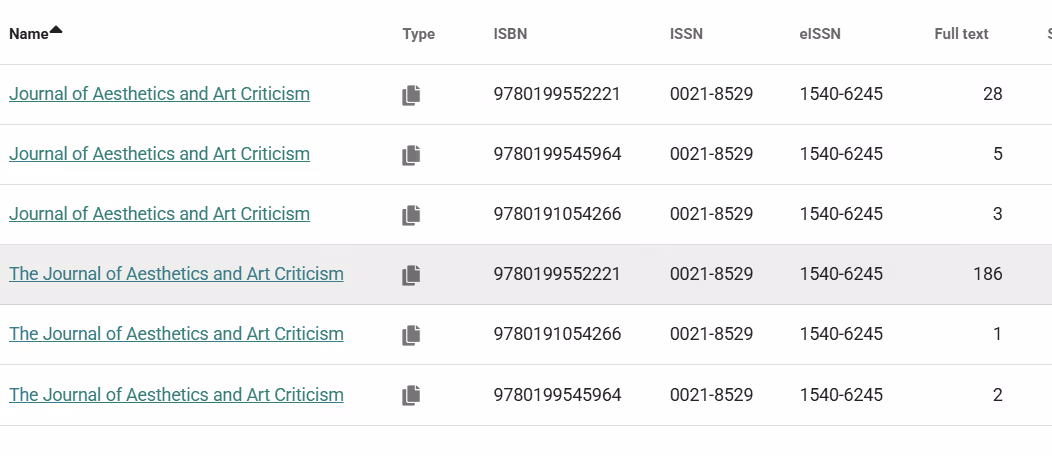 When you see multiple listings for the same journal, these are duplicate records of the same overarching title.