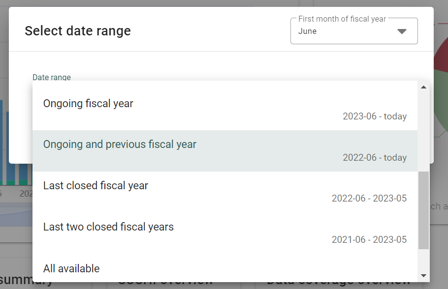 Now choose the option that suits your needs - Ongoing fiscal year, Ongoing and previous fiscal year, etc.