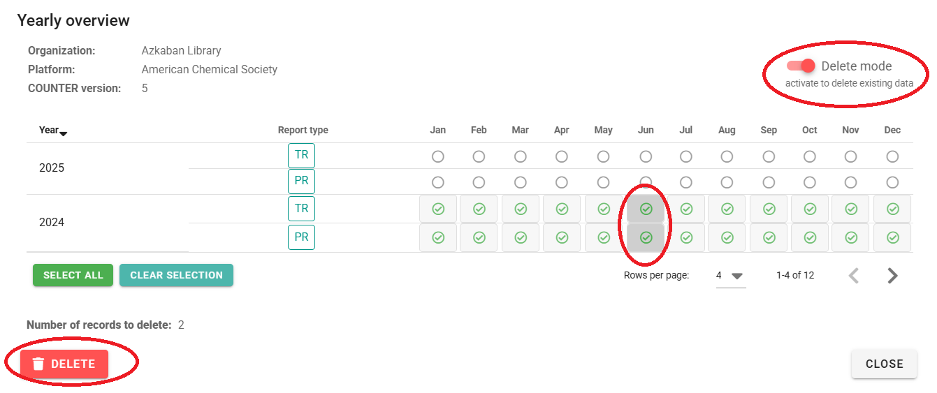 2. Enable the "DELETE MODE" slider, choose the affected months and click on "DELETE".