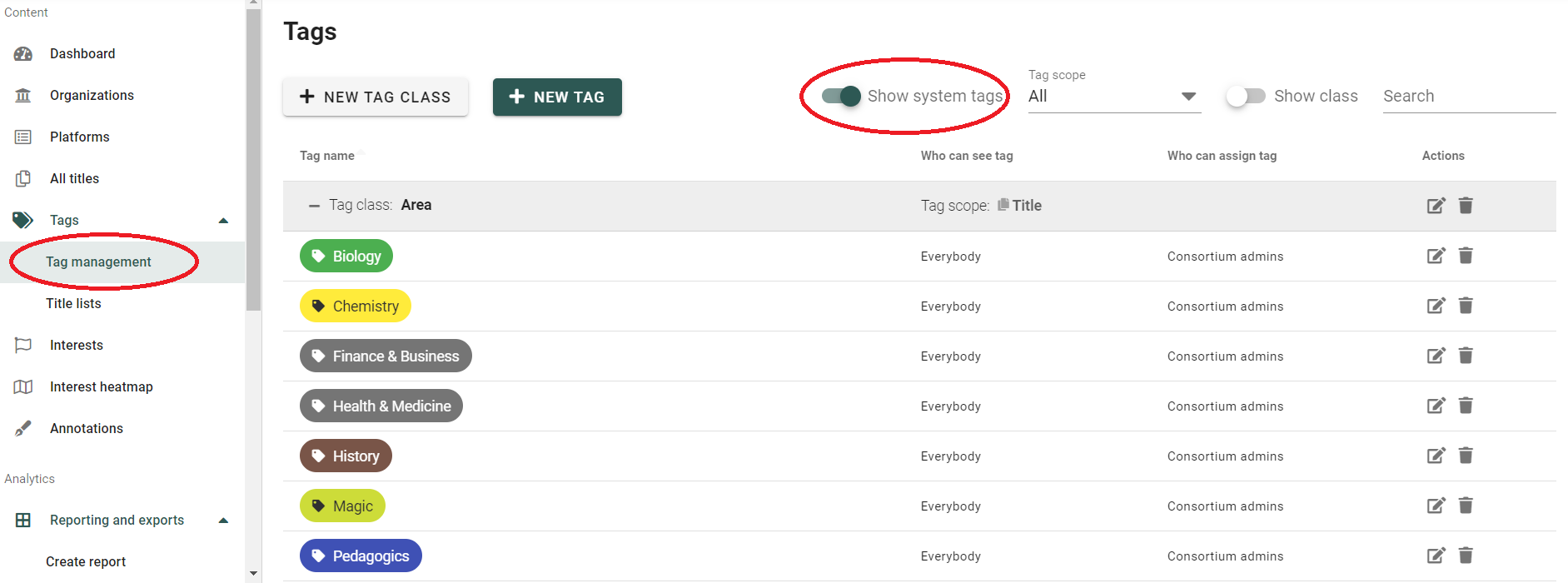 To hide the "Scopus #2" tags in your CELUS interface, navigate to Tag management and deactivate the "Show system tags" slider: