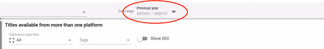 Here you can see a list of all titles with usage recorded in the time range selected in the top navigation bar.